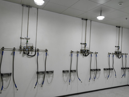 1.氣瓶間內工作壓力自動調節顯示屏與檢測室內設計的氣路移動終端相互備選SS316LBA管做好連入,管線內表皮滑膩度為Ra<0.4umBA級管線。